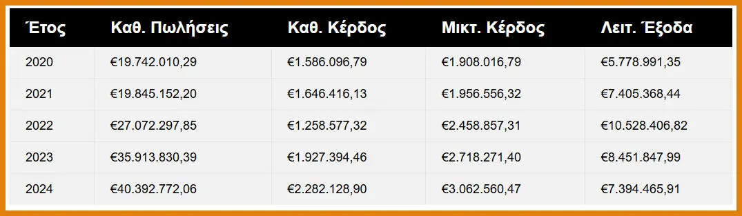 Μεγαλύτερη ήταν η άνοδος στο καθαρό κέρδος, το οποίο διαμορφώθηκε στα 2,28 εκατ., αυξημένο κατά 18,42% σε σύγκριση με το προηγούμενο έτος. Σημαντικό στοιχείο είναι και η μείωση των λειτουργικών εξόδων κατά 7,84%, φτάνοντας τα 780.431,55 ευρώ, έναντι 846.866,39 ευρώ το 2023, κάτι που φανερώνει την πρόοδο στον έλεγχο δαπανών και την αύξηση της αποδοτικότητας.